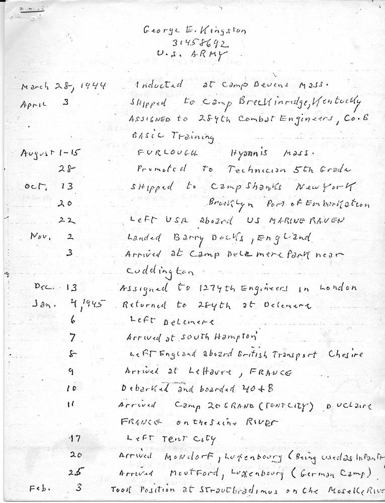 B Company History as told by George Kingston