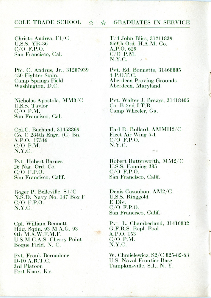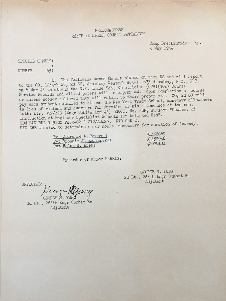 Was sent to NY Trade School for electrical with Kersanskas and Krebs