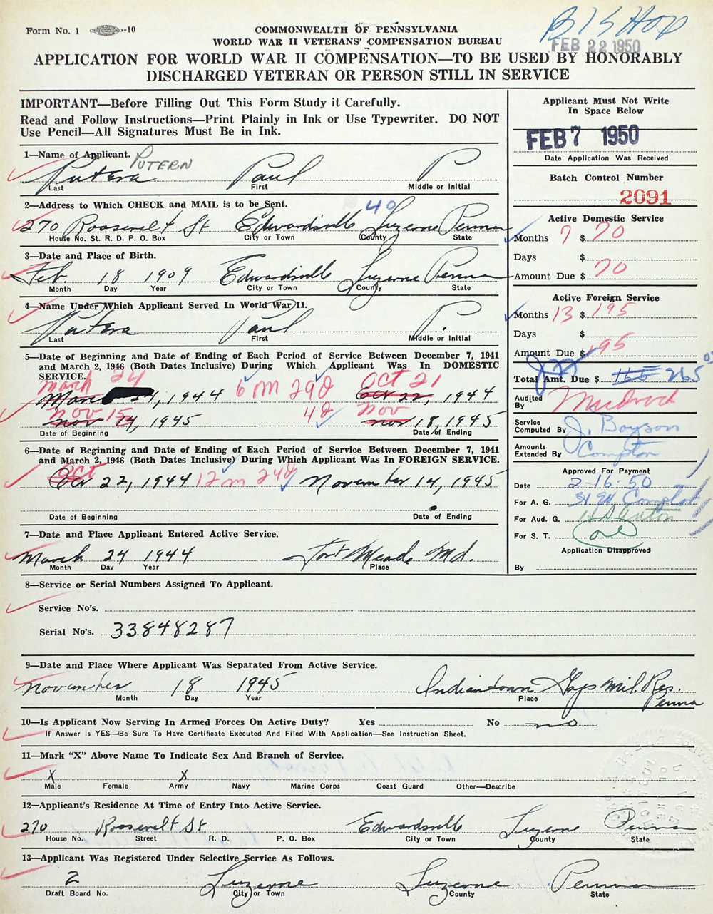 Released from duty: 18 Nov 1945