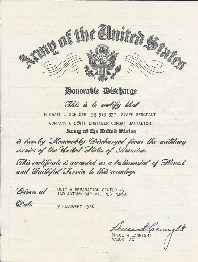 Released from duty: 9 FEB 1946