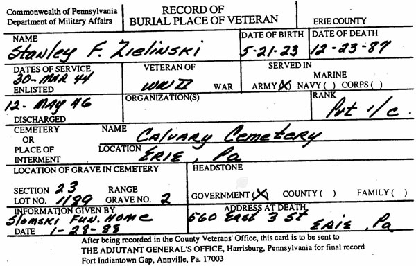 PFC Stanley F. Zielinski