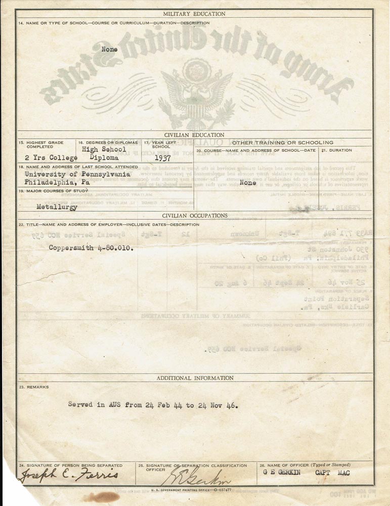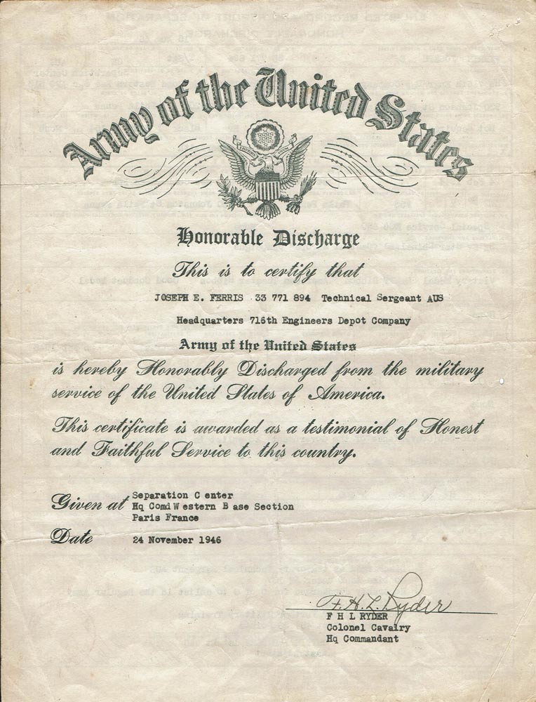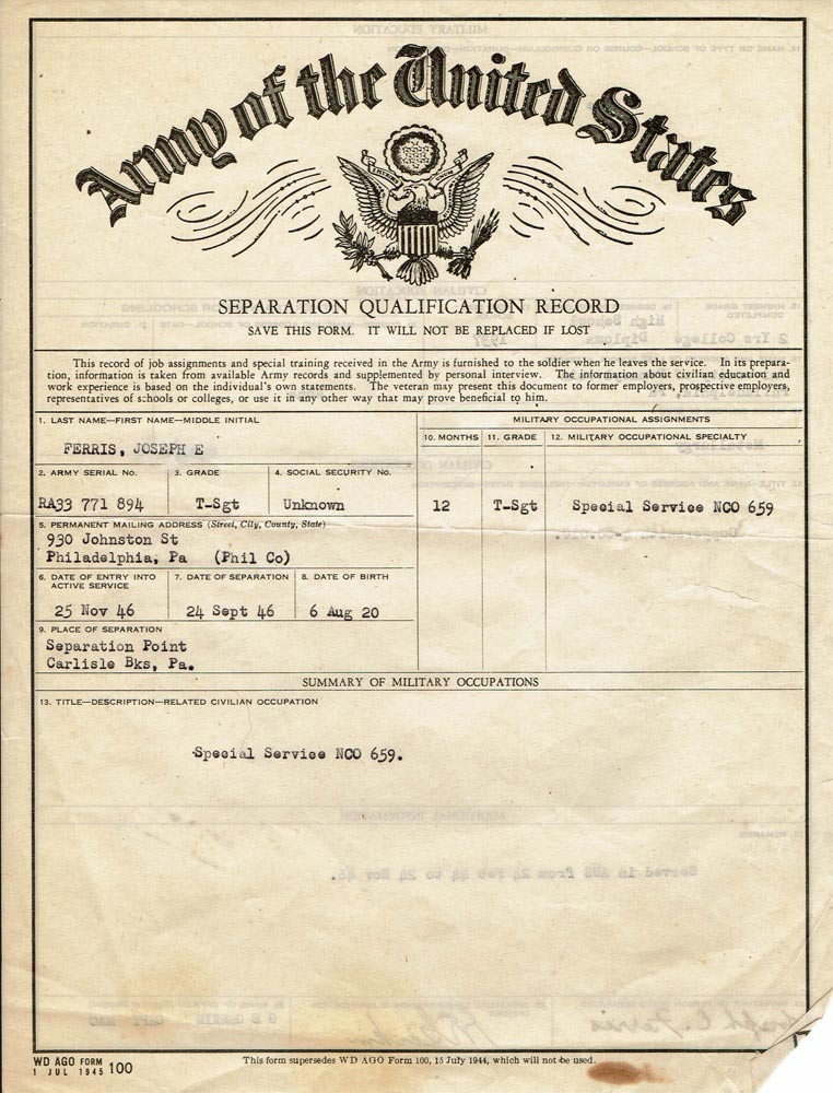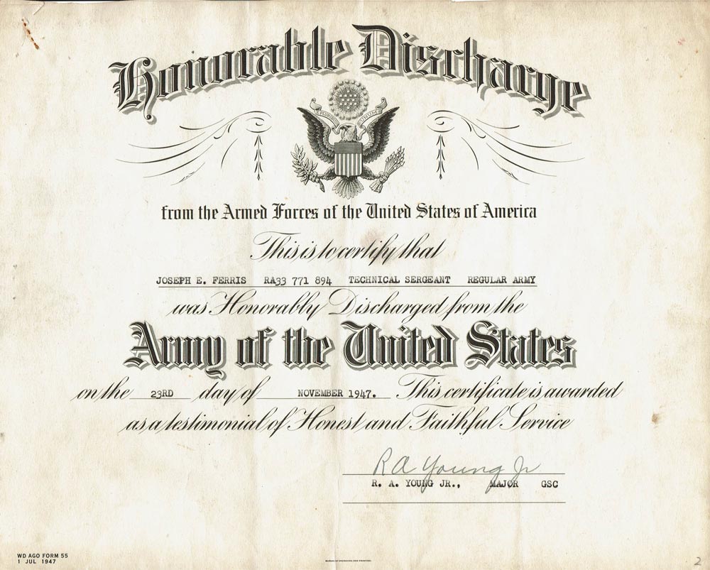 Released from duty: 23 NOV 1947