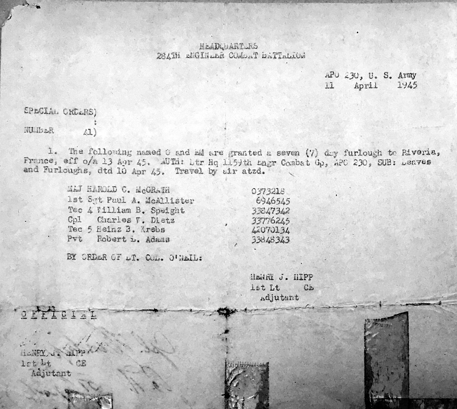 Promoted to Major 1 APR 1945